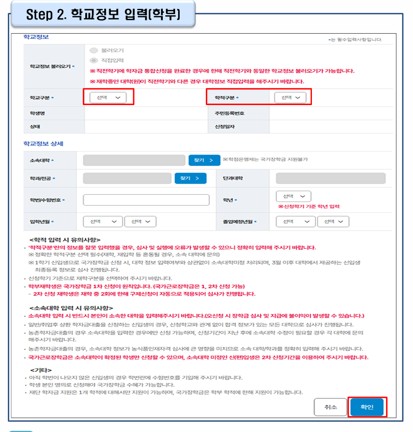 특별한 사유가 있다면 한국장학재단과 학교 담당부서에 동시 문의하세요.
