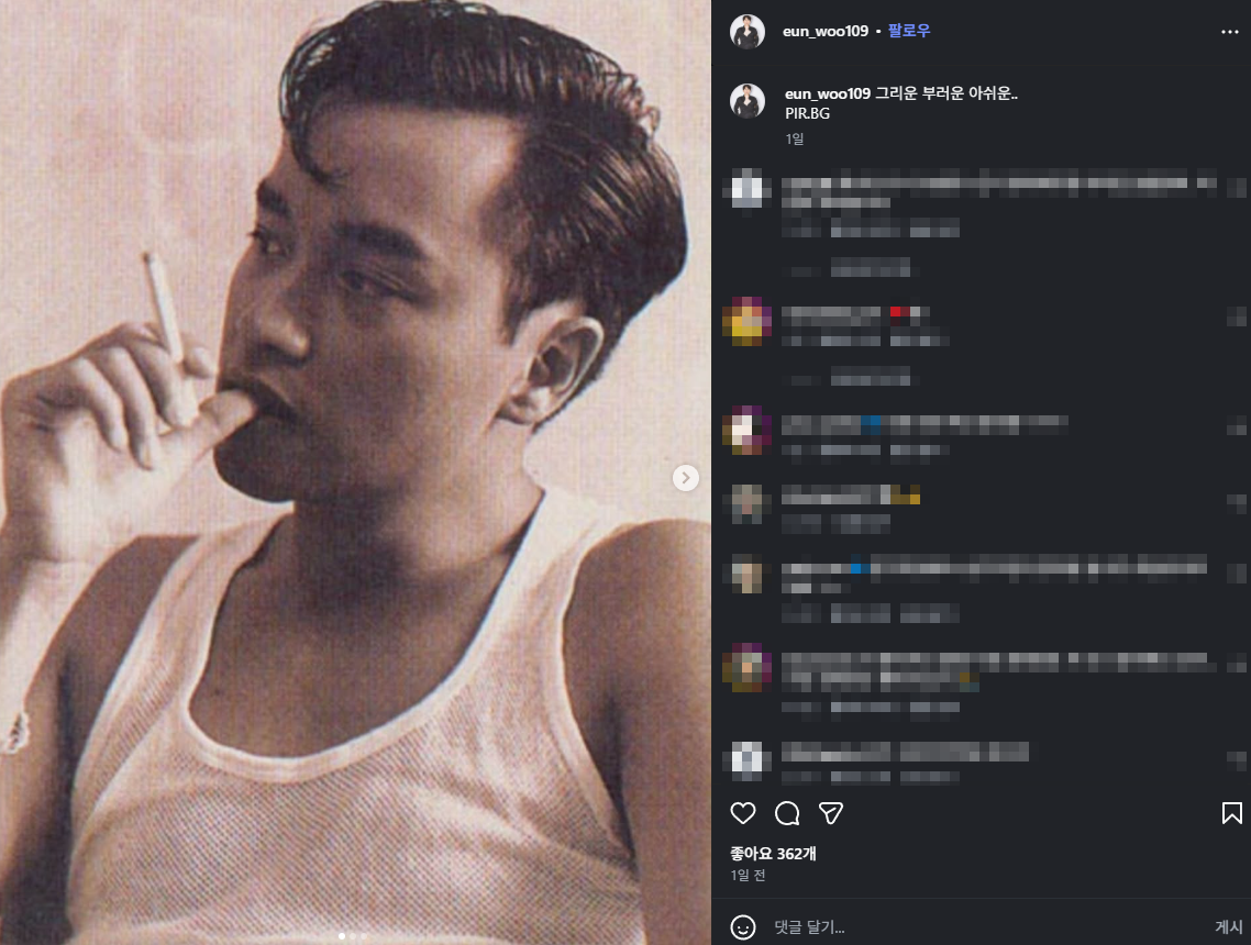 이 게시물의 캡션에는 "그리운 부러운 아쉬운..PIR.BG"라는 문장이 적혀 있었습니다.