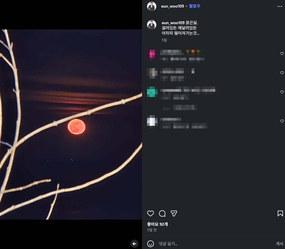 참고: 이 문장이 정확히 무엇을 향한 말이었는지는 고인만이 알겠지만, 결과를 알고 다시 보게 된 '붉은달' 사진은 많은 사람에게 "놓쳐버린 신호 같아서 더 미안한 게시물"로 남은 것 같습니다.