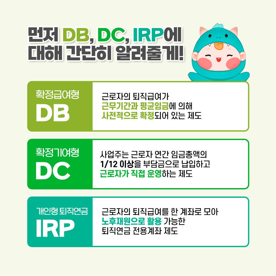 - ✓ 퇴직연금 3종류: DB형(확정급여) / DC형(확정기여) / IRP(개인형) 완벽 이해