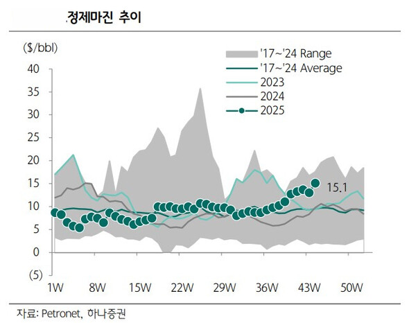 국제 석유제품 가격과 정유사의 정제 마진이 강세를 보이면서, 소비자가 최종적으로 지불하는 가격에 추가적인 상승 요인이 더해졌습니다. 쉽게 말하면 원재료는 싸졌지만 가공 비용이 올라서 최종 가격은 더 비싸진 꼴입니다.
