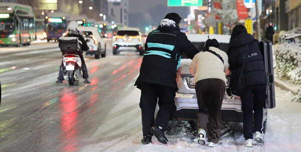특징: '습설(습하고 무거운 눈)'으로, 차 위에 쌓일 경우 하중이 평소보다 몇 배나 무거워져