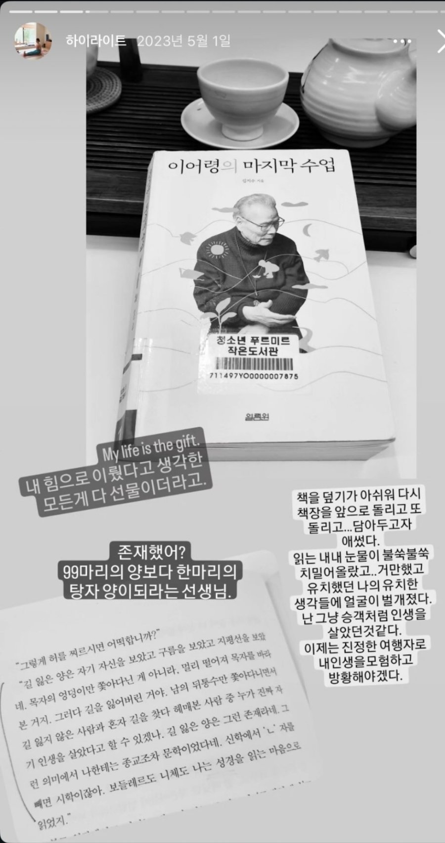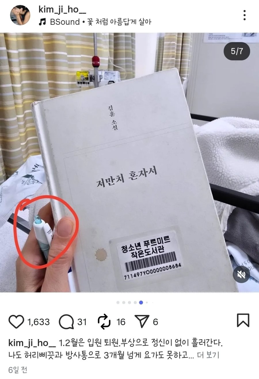 2월 18일 – 김지호, SNS에 병실 독서 인증샷 게시 (공공도서 볼펜 밑줄 포착)