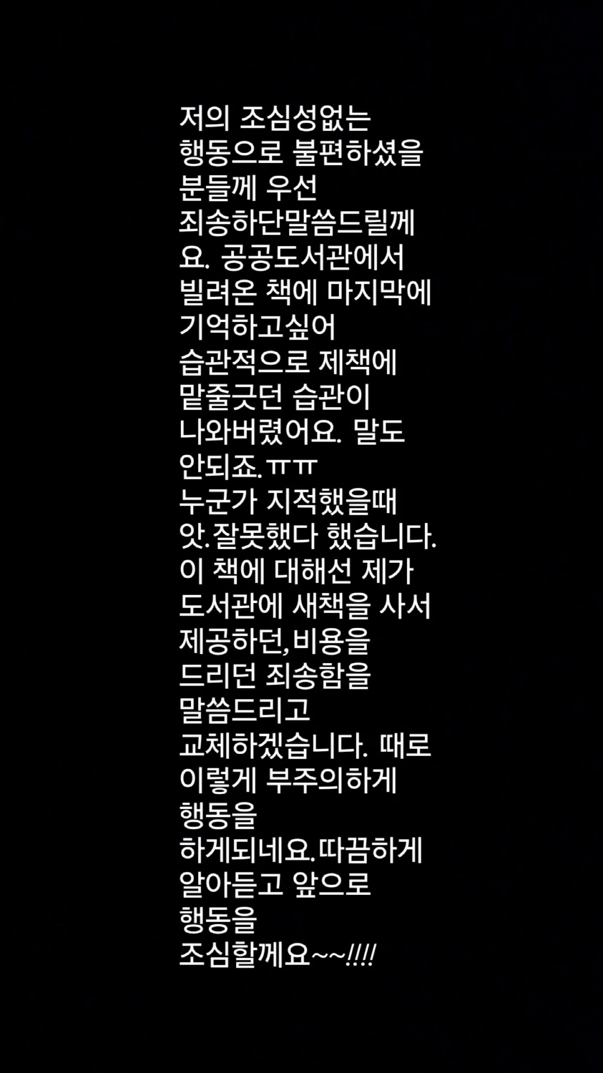잘못 인정 – "조심성 없는 행동으로 불편을 드려 죄송하다"며 공식 사과