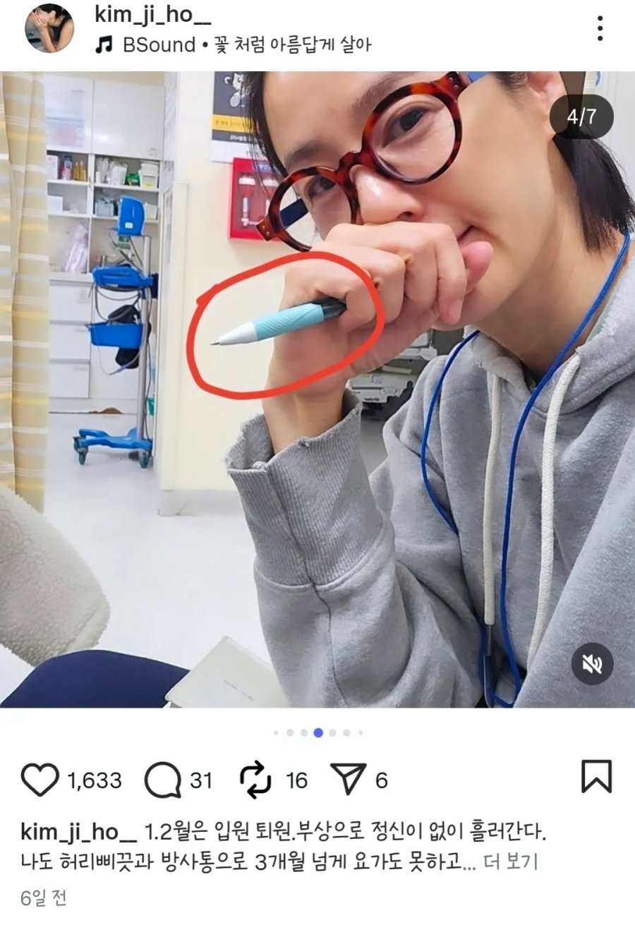 2월 18일 – 김지호, SNS에 병실 독서 인증샷 게시 (공공도서 볼펜 밑줄 포착)