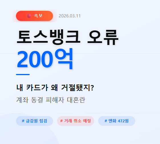 ※ 본 글은 2026년 3월 11일 오전 보도 기준입니다. 토스뱅크의 공식 공지에 따라 내용이 변경될 수 있으며, 중요한 결정 전 공식 공지를 반드시 확인하세요.