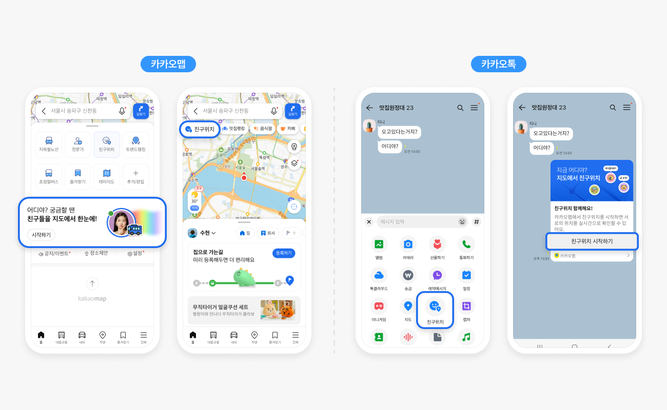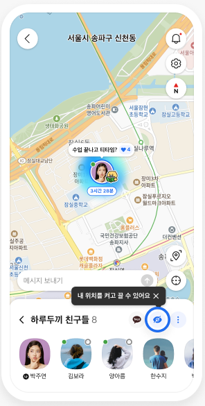 - "친구위치 기능은 상호 동의가 전제되며, 언제든 사용자가 위치 공유를 중단하거나 숨길 수 있습니다"