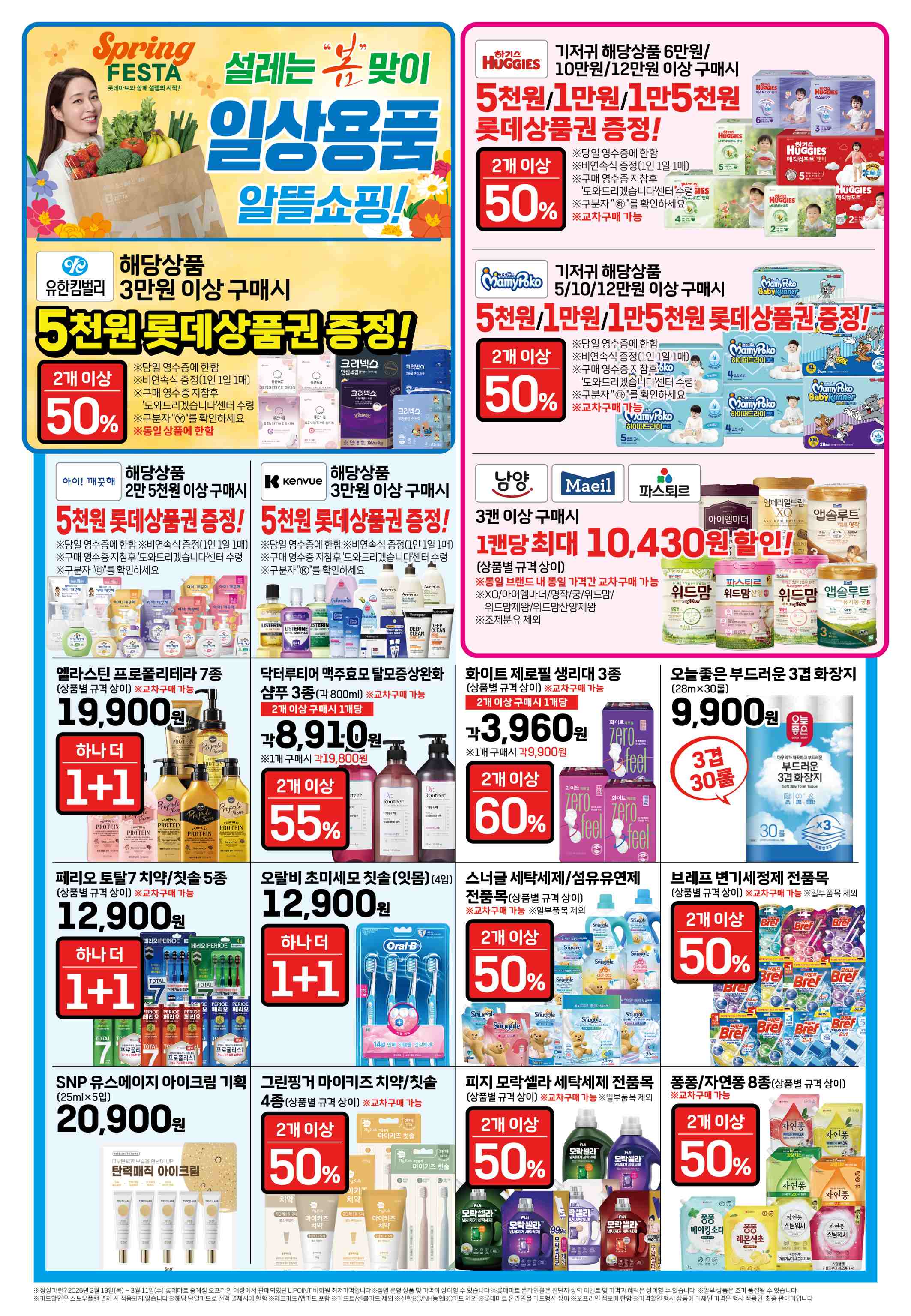 • 하기스/마미포코 기저귀 (2개↑ 50% 할인) — 구매 금액대별 최대 15,000원 롯데상품권 추가 증정