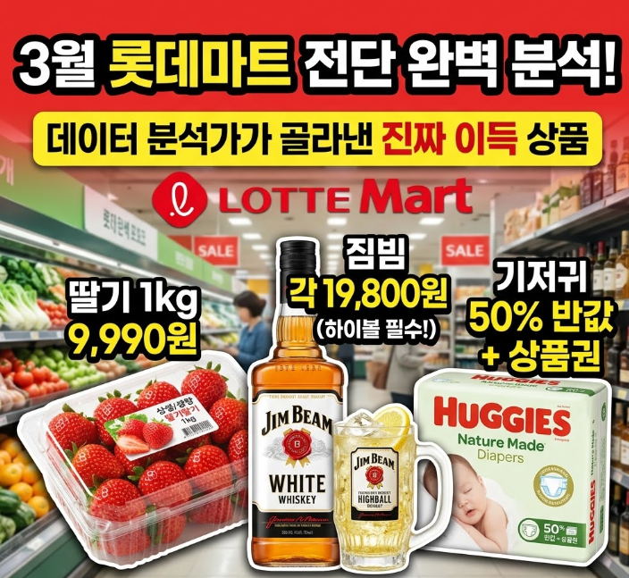#롯데마트전단 #롯데마트할인 #3월장보기 #마트전단행사 #딸기할인 #짐빔위스키 #기저귀할인 #용가리치킨 #생필품절약 #고물가장보기 #마트쇼핑꿀팁 #롯데마트3월 #장바구니절약 #공구핫딜 #생활비절감