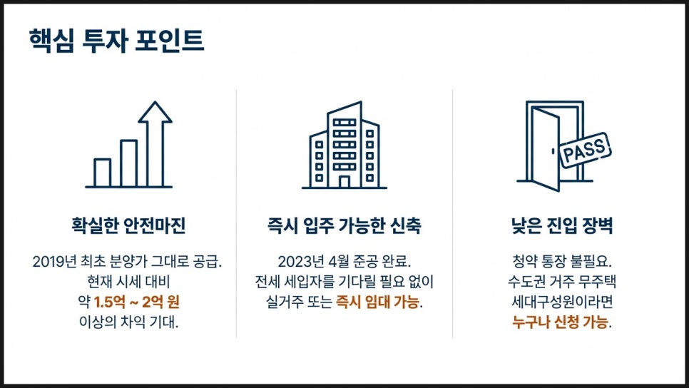 • 준공 완료 단지 — 입주 시기 리스크 없음, 실물 확인 후 계약 가능