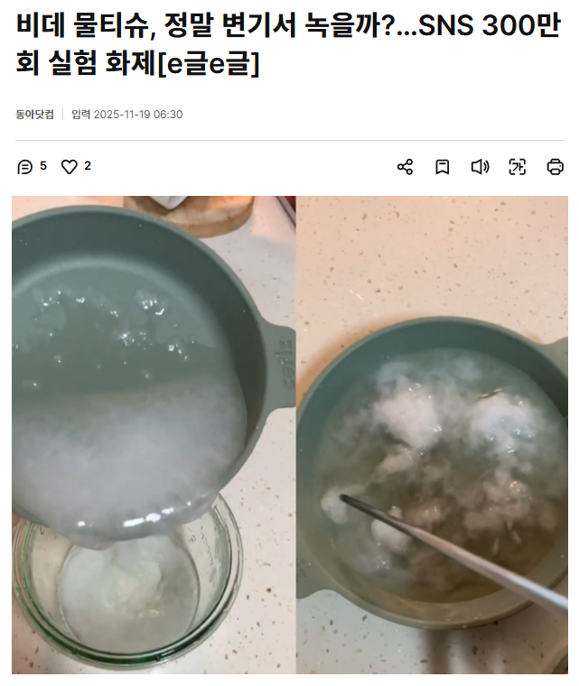 비데 물티슈, 정말 변기서 녹을까?…SNS 300만 회 실험 화제[e글e글]