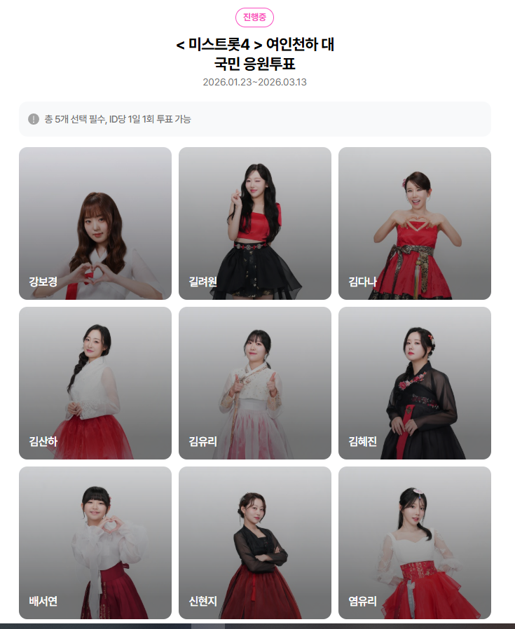 투표는 네이버 '미스트롯4' 응원투표로 진행됩니다.