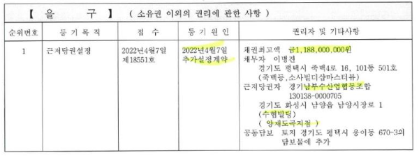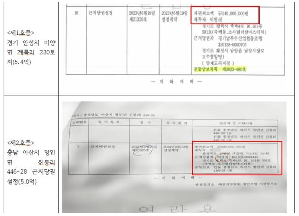 • 충남 아산시 토지 근저당권 채권 5억 5천만 원