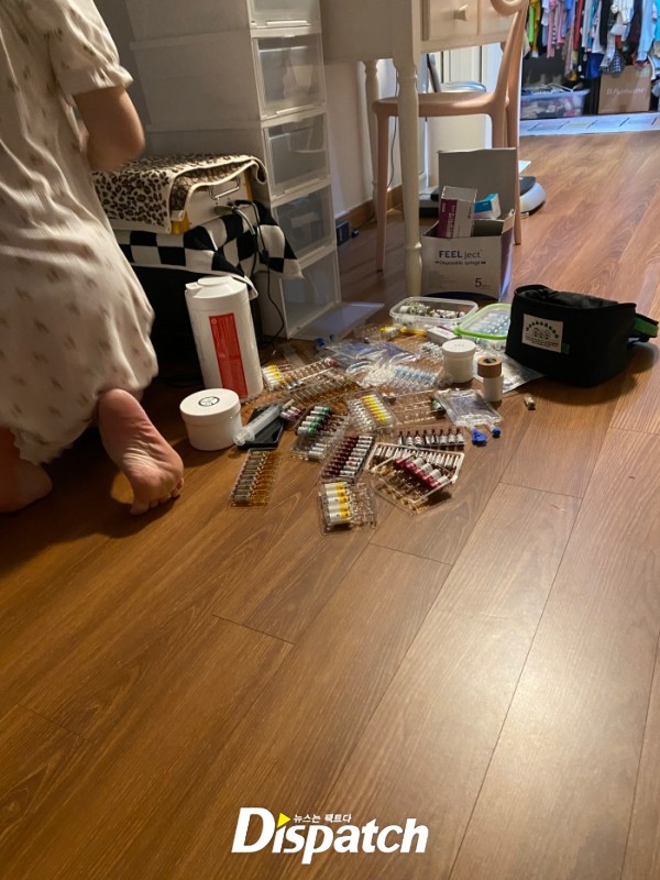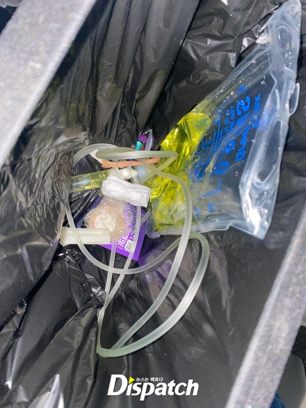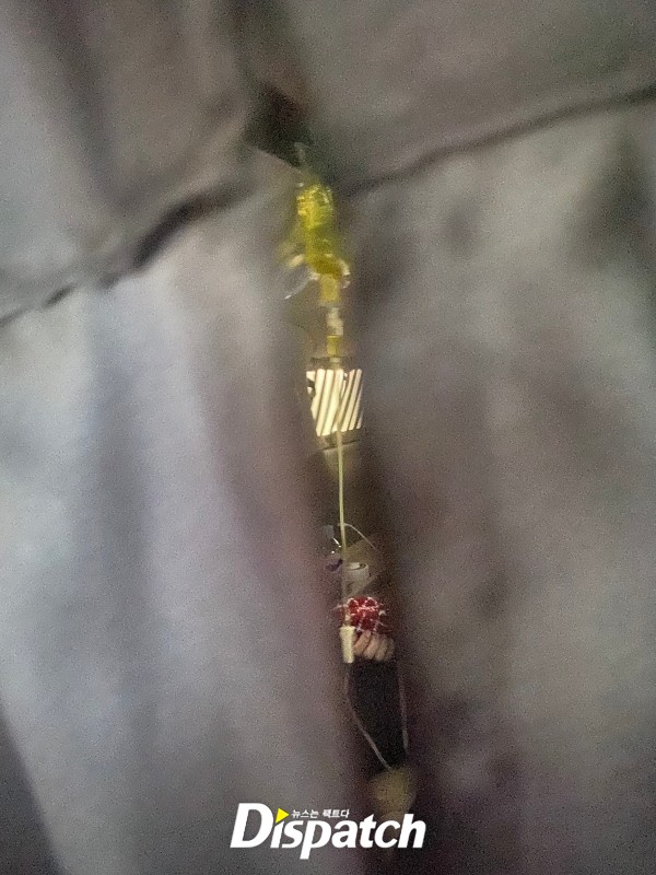 - 차량 내 링거줄 사진: 해외 촬영 귀국 후 차량 뒷좌석에서 링거줄이 보이는 장면