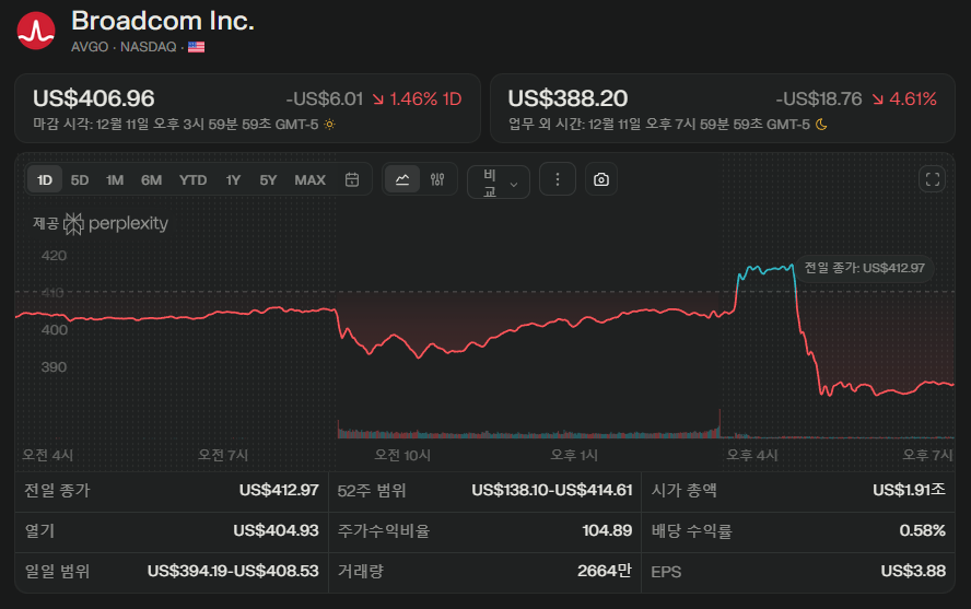2025년 12월 11일(현지시간), AI 반도체 대장주 브로드컴(AVGO)이 2025 회계연도 4분기 실적을 발표했습니다.