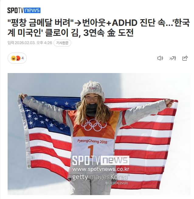 이번 올림픽에서 클로이 킴의 서사는 명확합니다. 이미 2연패 여왕이지만, 부상과 공백을 딛고 3연패에 도전하는 재기·극복의 스토리입니다. 나이·부상·번아웃으로 은퇴 루머까지 돌았던 선수가 다시 "전설을 완성하러" 나오는 그림이라, 미국 매체는 "역사와 싸우는 올림픽"이라는 표현을 쓰고 있습니다.