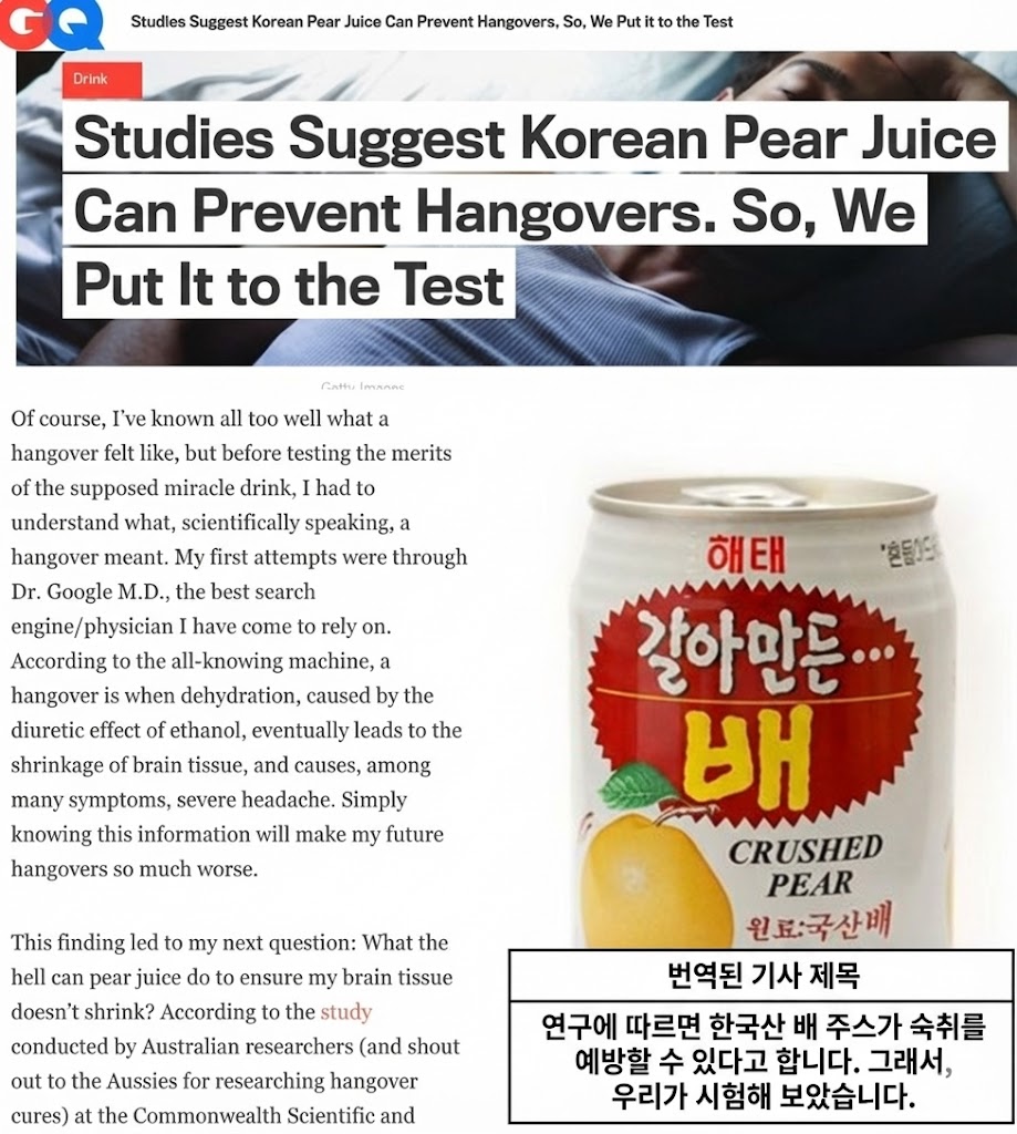 외국 커뮤니티에서 한국 배 음료가 'IdH'(I don't have Hangover)라고 불리는 이유가 있습니다.