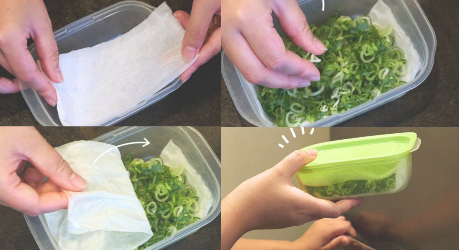 잎채소(대파, 상추, 깻잎, 시금치)는 보관 용기 바닥에 키친타월을 깔아두세요.