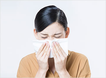 증상: 재채기, 맑은 콧물, 코막힘, 눈 가려움·충혈, 목 따가움