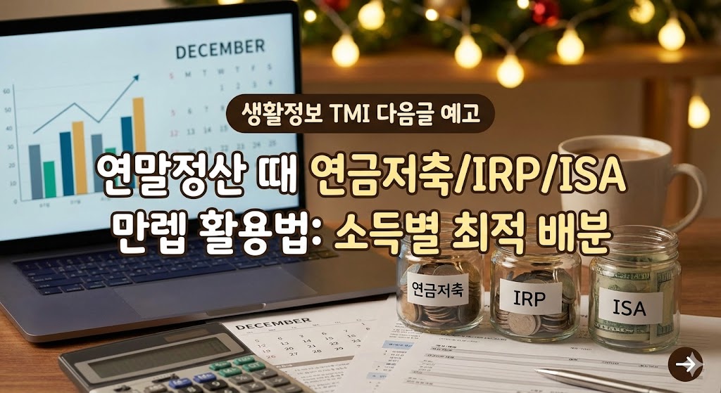 | [생활의 TMI #7] 연말정산 절세계좌 끝판왕! 연금저축·IRP·ISA, 내 연봉별 900만원 황금비율 (0) | 2025.12.18 |