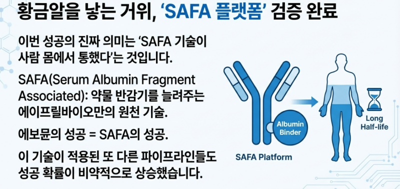 이번 성과는 단순한 임상 성공을 넘어, SAFA 플랫폼 자체가 '임상적으로 검증된 플랫폼'으로 격상되었음을 의미합니다.