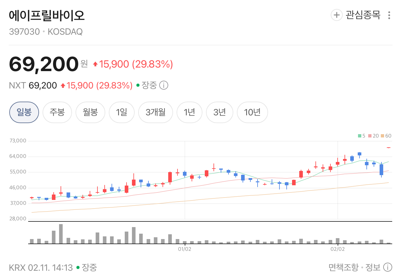 ✓ 오늘: 에이프릴바이오 상한가 직행!