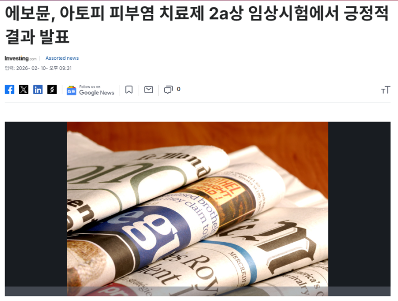 🚀 3. 대반전의 서막: 에보뮨 임상 2a상 성공 발표!