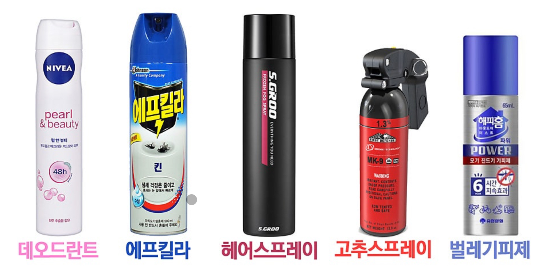 주의: 에어로졸은 제품 종류(살충제/페인트/윤활제/화장품)에 따라 성분이 다릅니다.