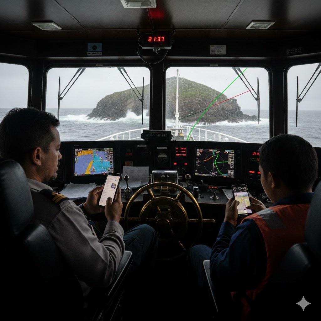 섬이 밀집한 위험한 협수로 구간. 이곳은 반드시 수동으로 운항해야 하는 구역입니다. 자동항법장치에만 의존하면 안 되는 곳이죠. 그런데 바로 이 구간에서 일등항해사는 휴대전화로 뉴스를 검색하고 있었습니다.
