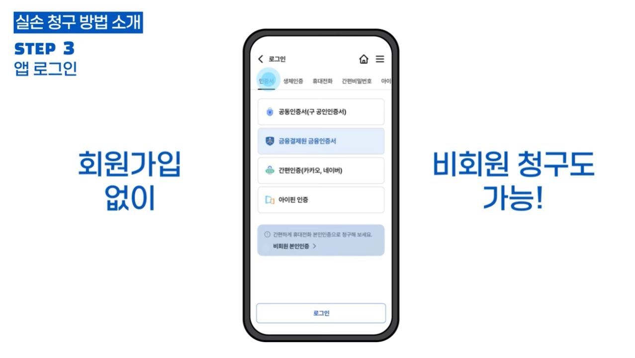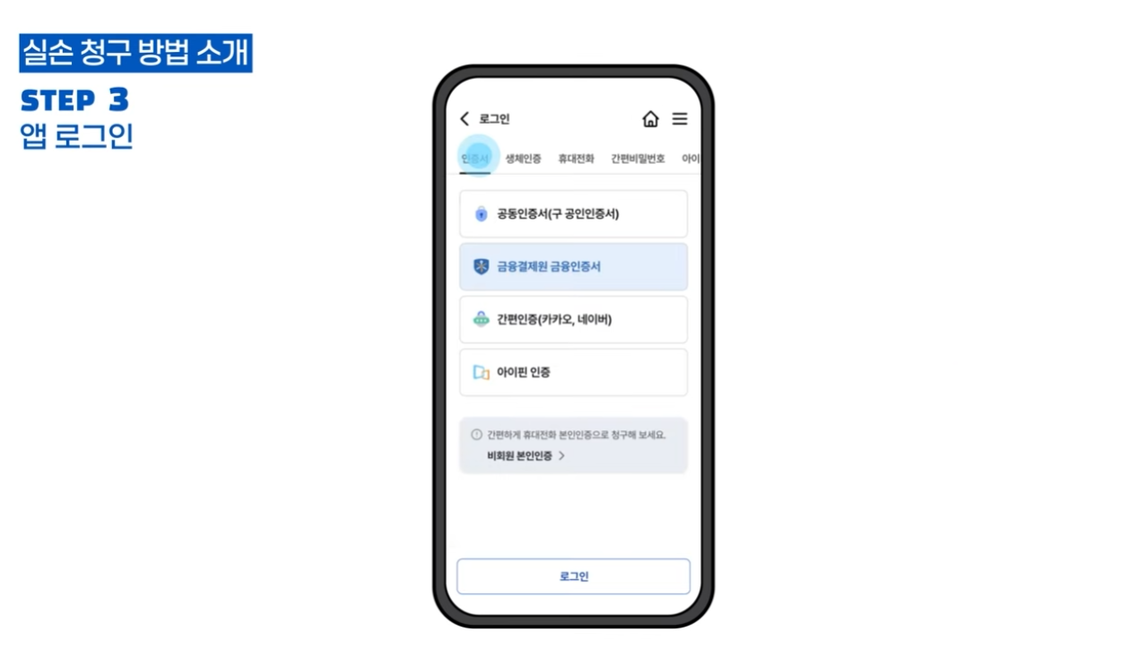 1단계 (5분): 실손24 앱 다운로드 → 간편인증 로그인