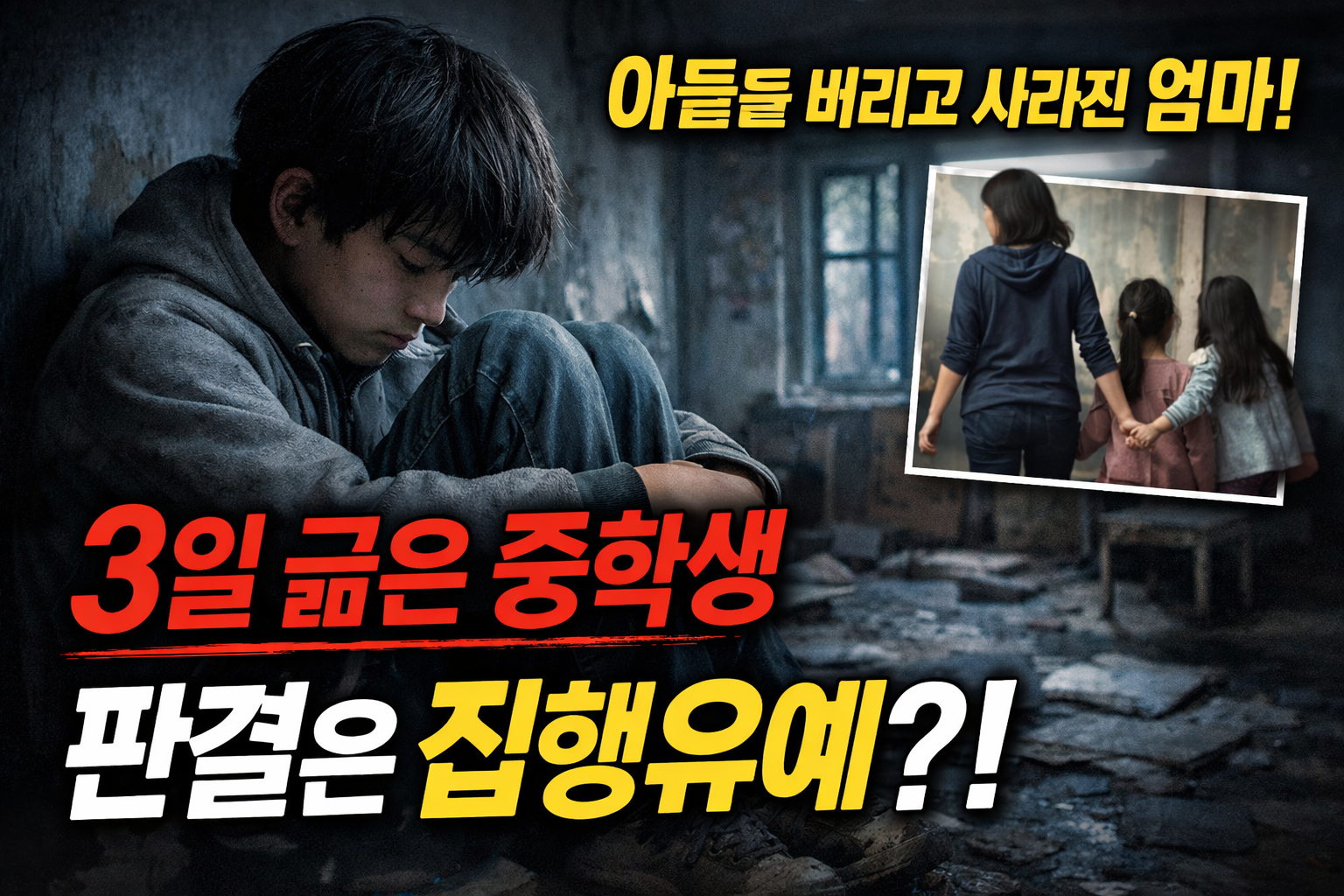 40대 친모가 중학생 아들을 난방도 끊긴 빈집에 홀로 남겨두고 딸 셋만 데리고 몰래 이사를 갔습니다.