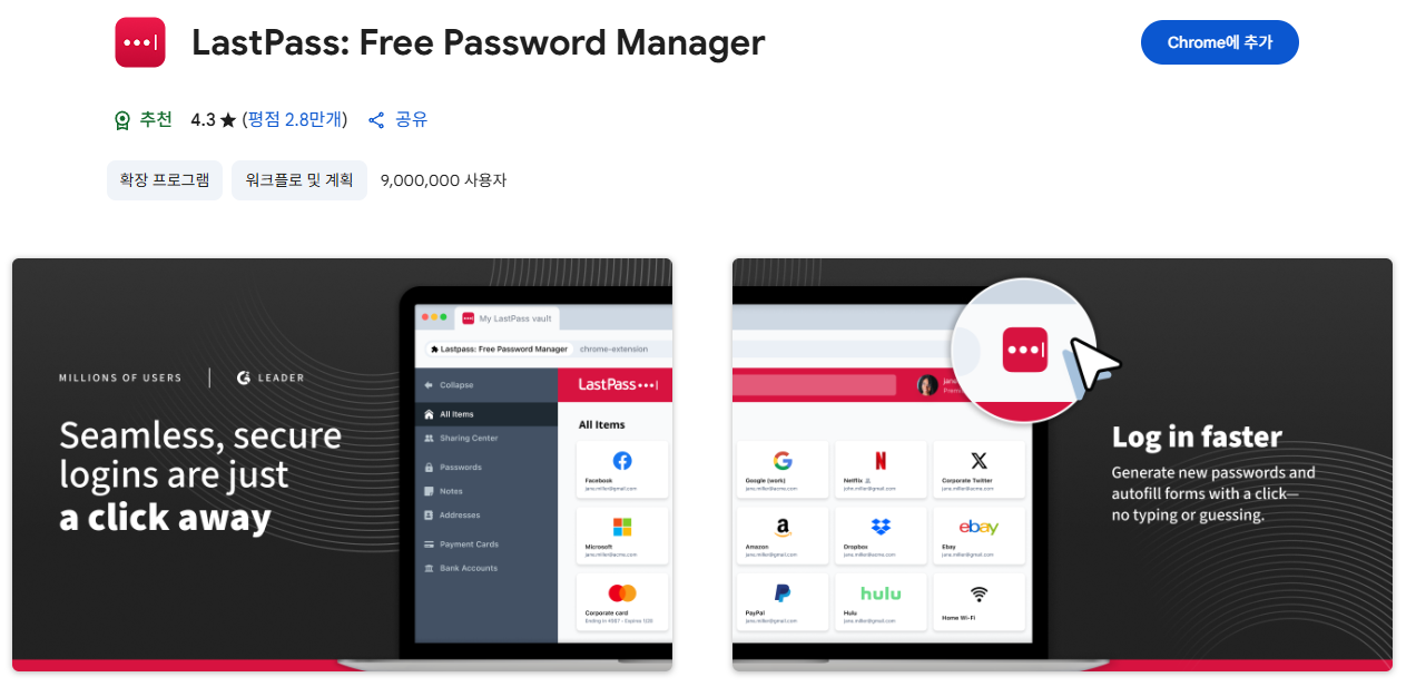 - 크롬 웹스토어에서 "LastPass" 검색