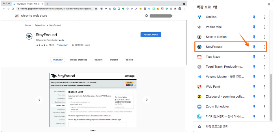 - 크롬 웹스토어에서 "StayFocusd" 검색