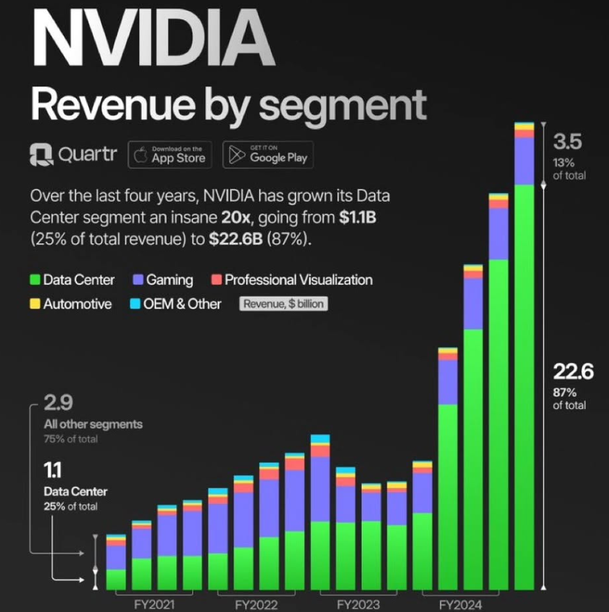 엔비디아의 GPU는 원래 게임용으로 개발되었지만, AI 학습에 필수적인 병렬 연산에 최적화되어 있다는 것이 밝혀졌습니다. ChatGPT를 비롯한 모든 대형 AI 모델은 엔비디아의 GPU 없이는 학습이 불가능할 정도입니다.