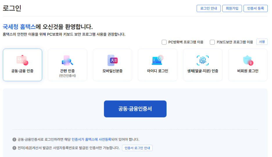 홈택스 접속 경로 (PC 기준)