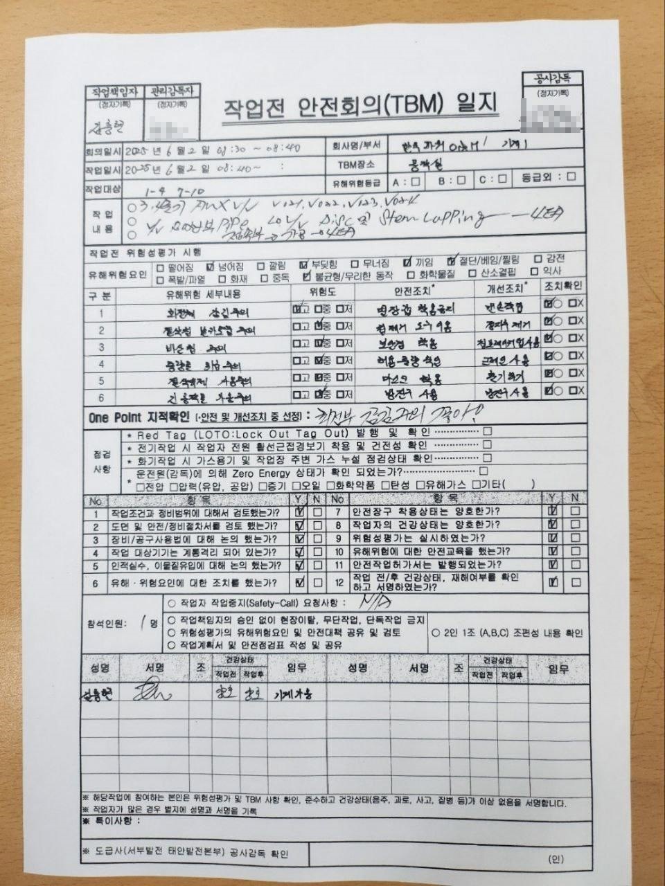 📌 2025년 태안화력발전소 김충현 사고