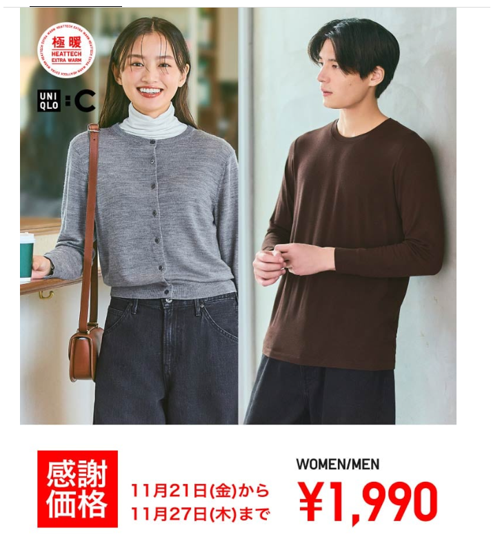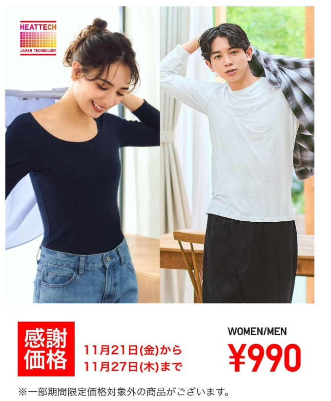 현재 일본 유니클로 세일 품목 (11/21~27)