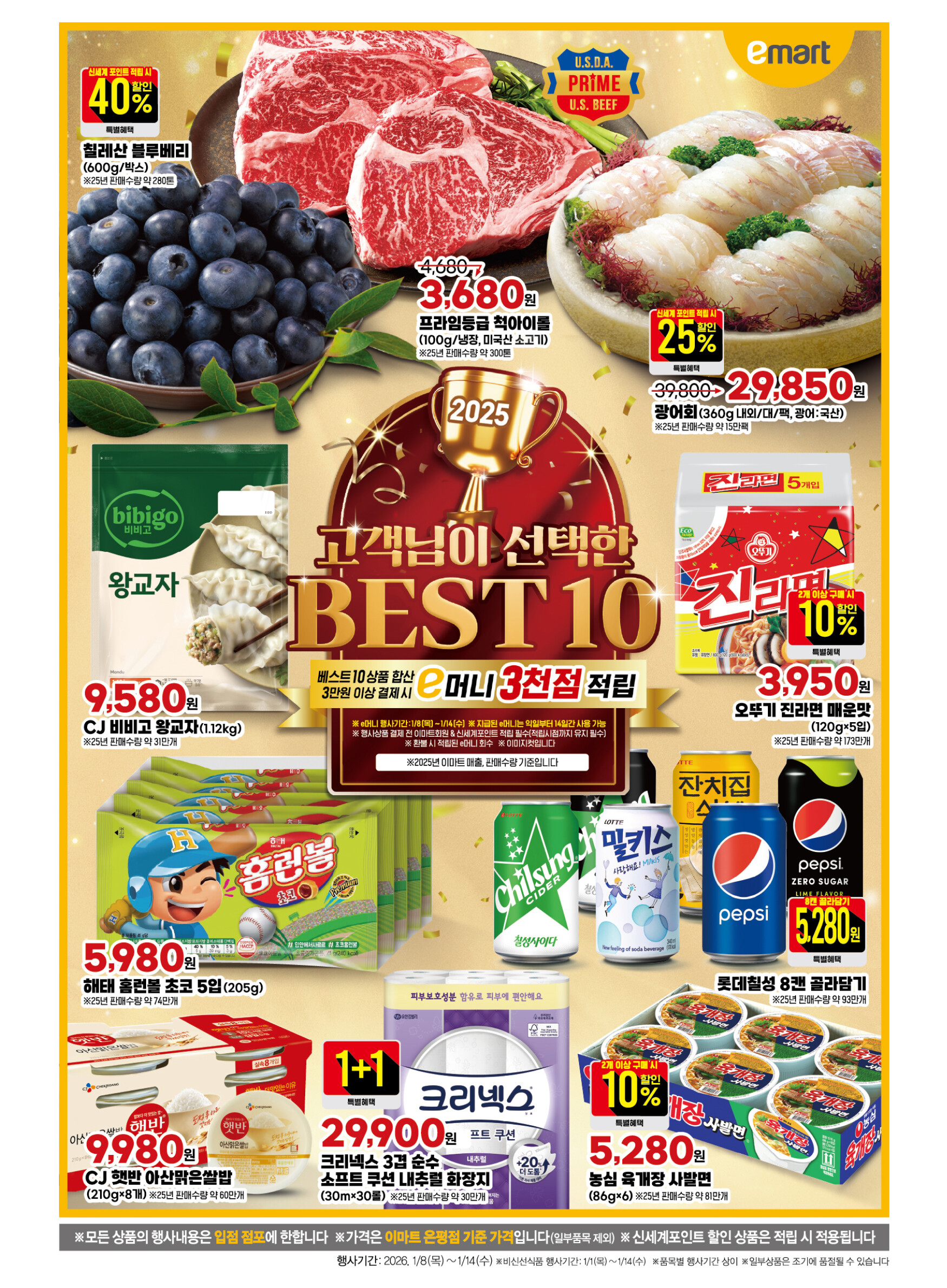 2025년 이마트 매출 실적을 기준으로 10개 인기 상품을 선정했고,