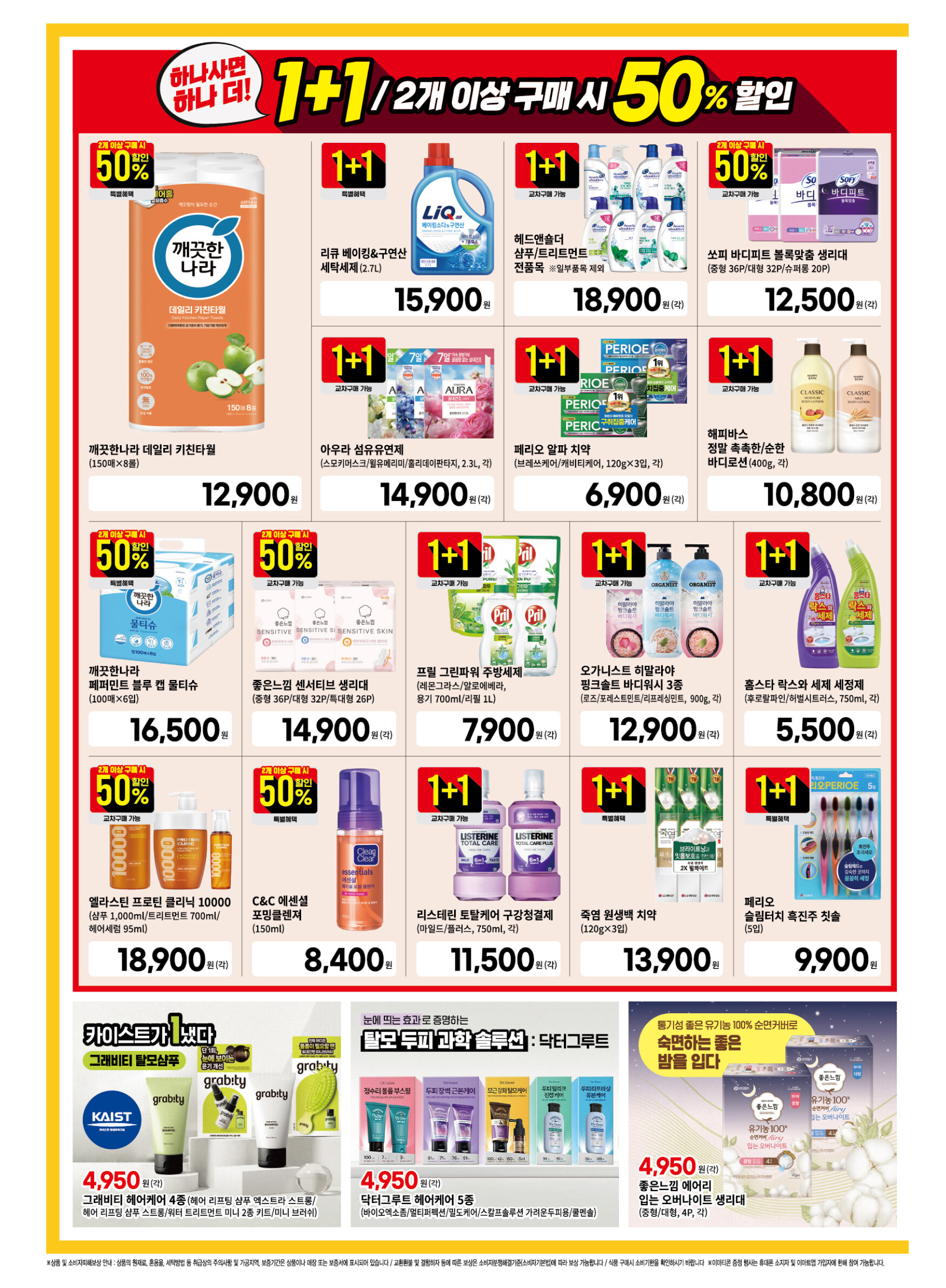 생필품 1+1 & 50% 할인 (리큐, 헤드앤숄더, 리스테린 등)