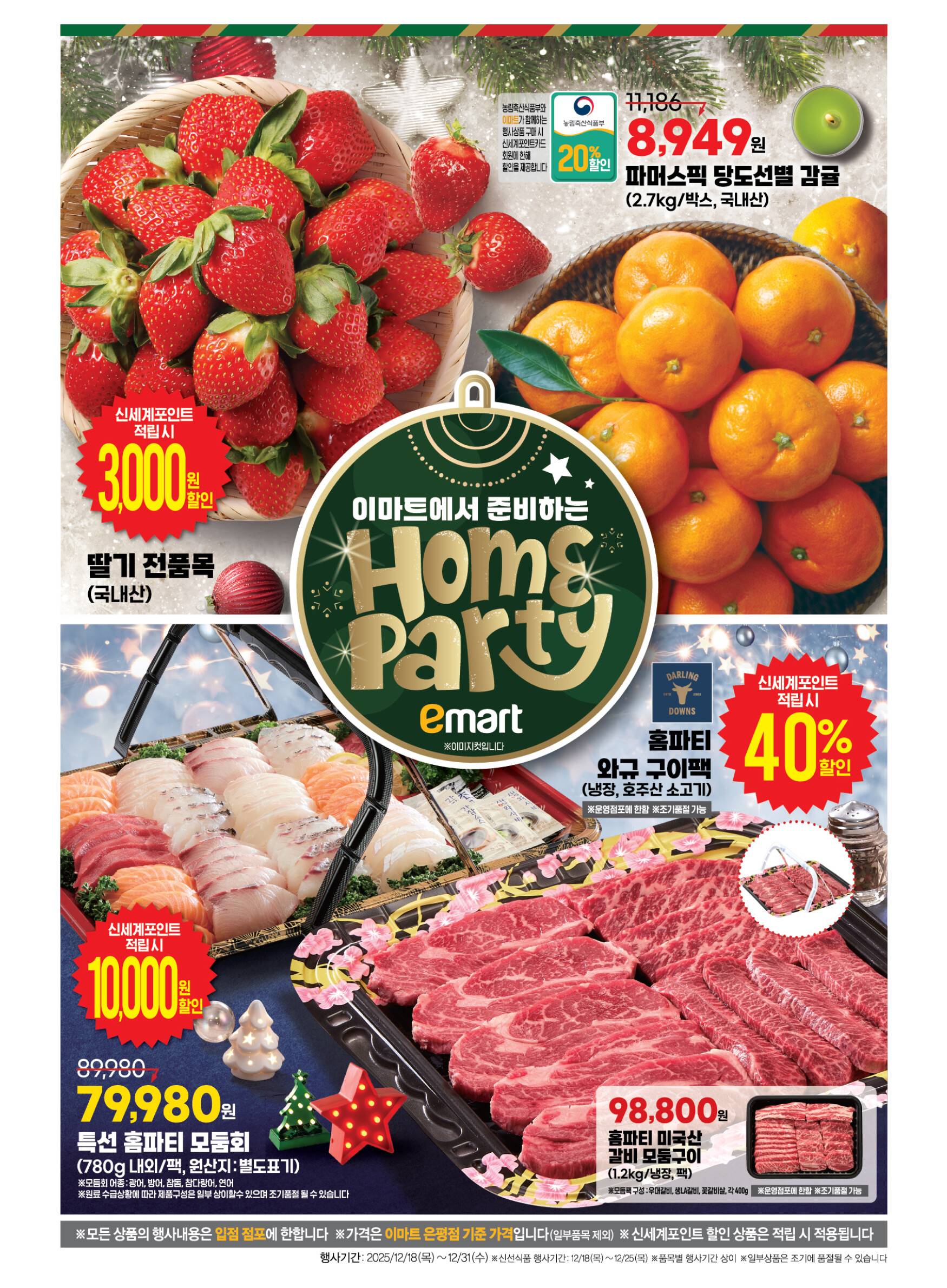 키워드: #이마트전단 #이마트세일 #12월이마트 #연말장보기 #홈파티음식 #딸기 #모둠회 #와규 #간편식특가 #생필품1+1 #전기요 #히터 #가습기 #크리스마스선물