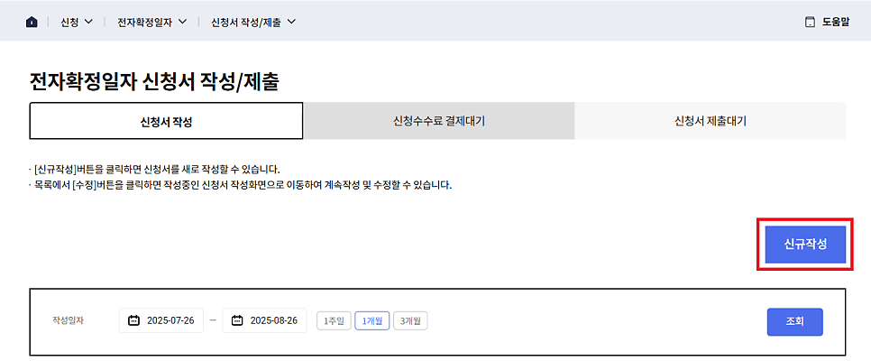 • 마이페이지에서 확정일자 증명서 PDF 다운로드