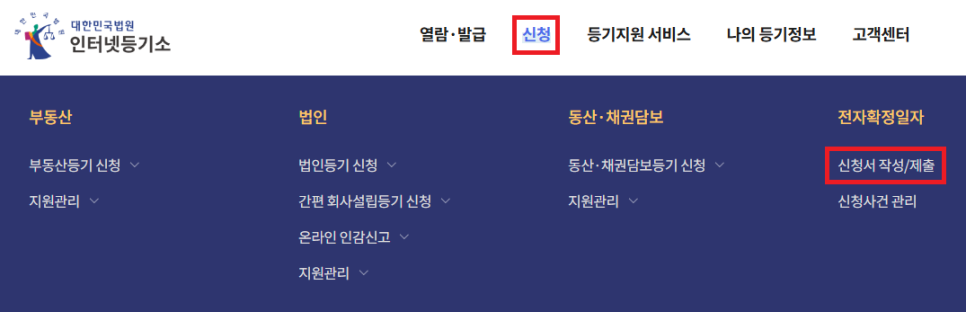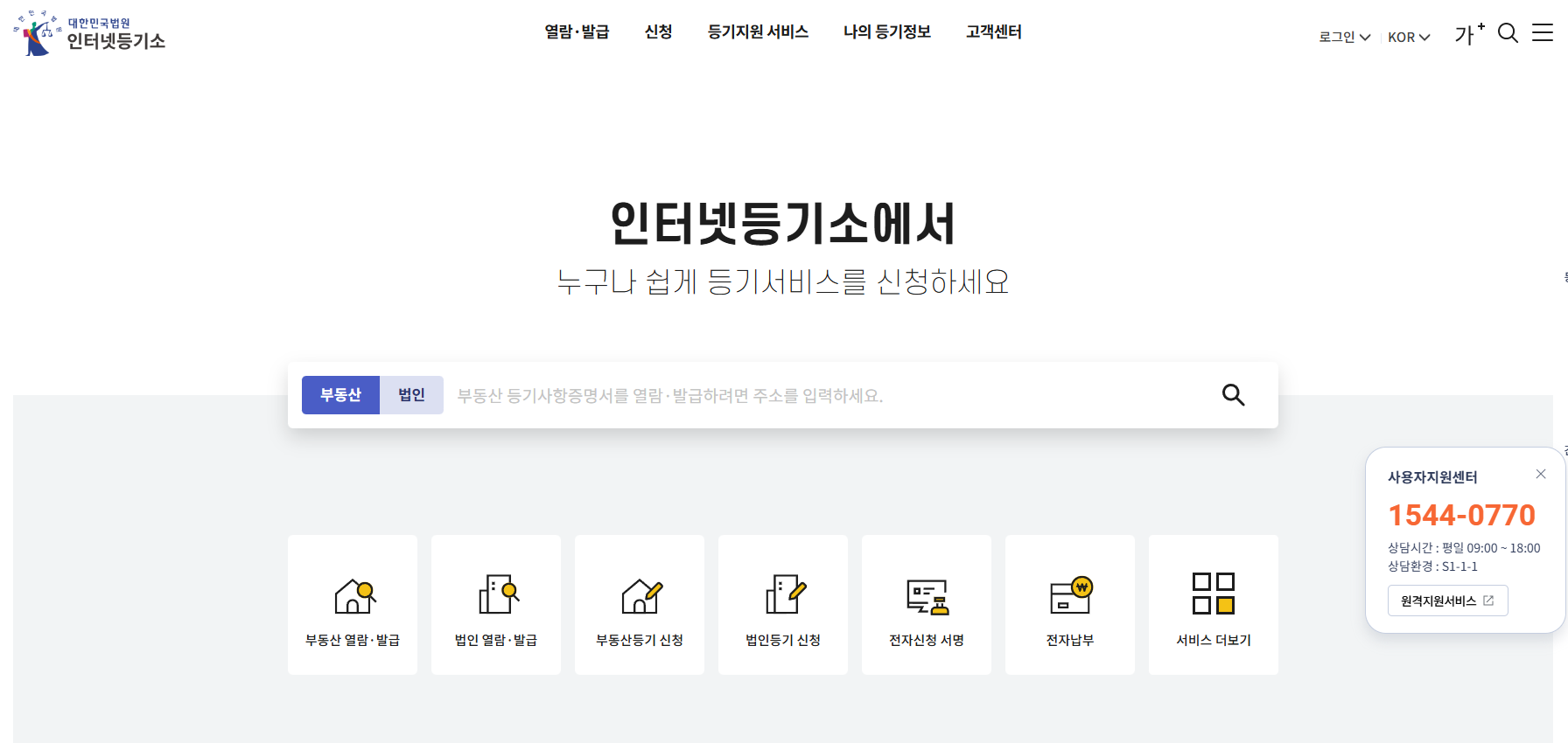 → 또는 인터넷등기소에서 단독 신청(500원)