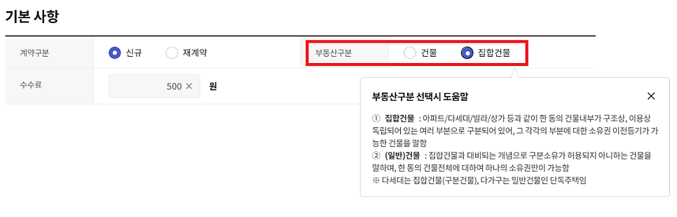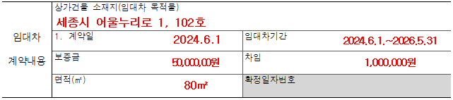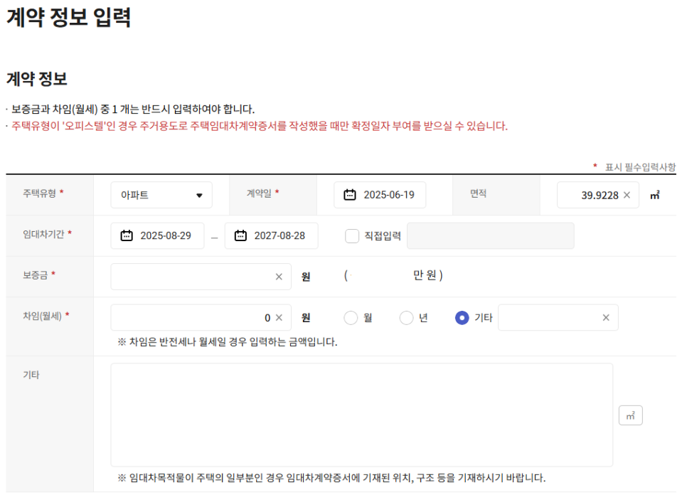• 계약 정보 입력 (주소, 보증금, 계약기간 등)