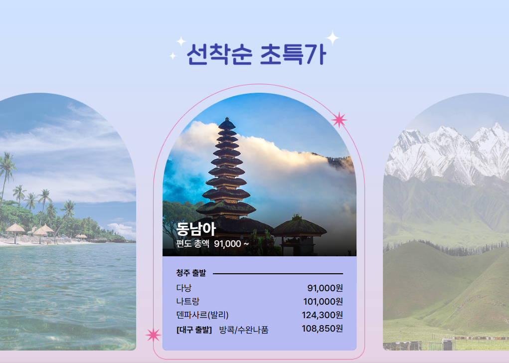 | 청주 → 다낭 | 9만 1,000원 | 청주 출발 초특가! |