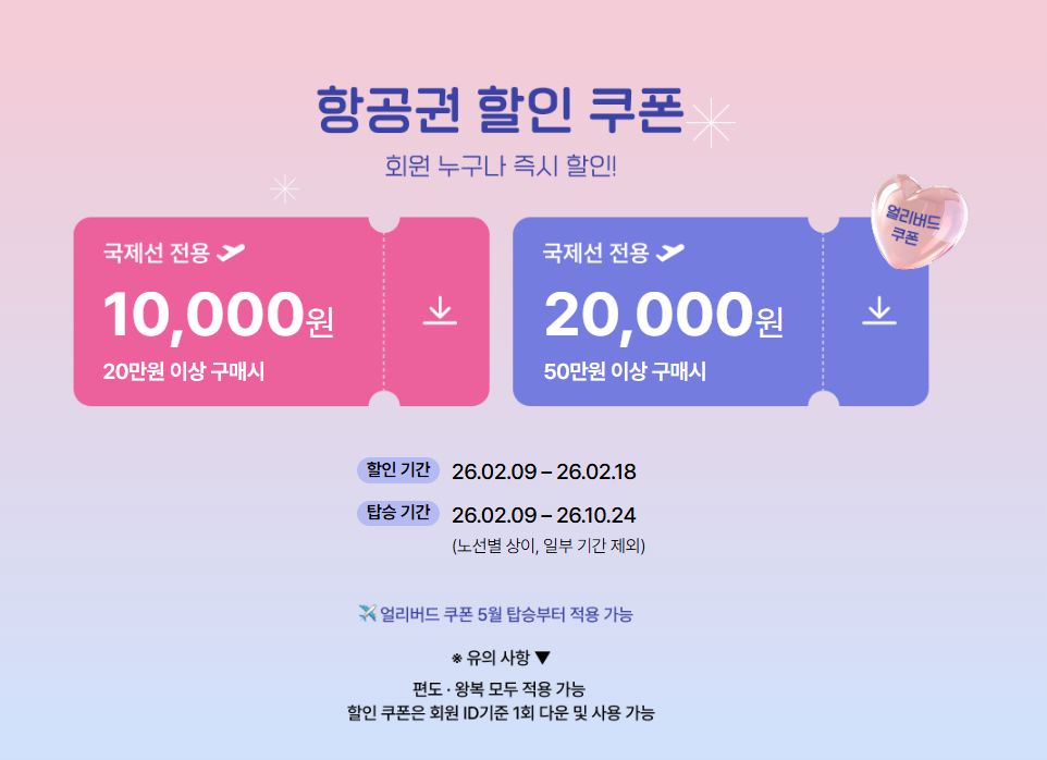 💳 항공권 할인 쿠폰 (회원 누구나)