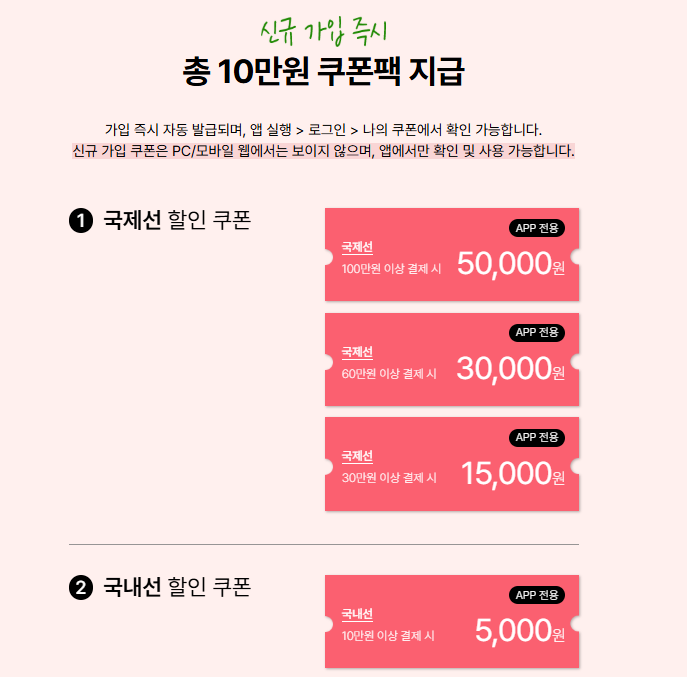 중요: 신규 가입 쿠폰은 티웨이항공 앱(APP)에서만 받을 수 있습니다.