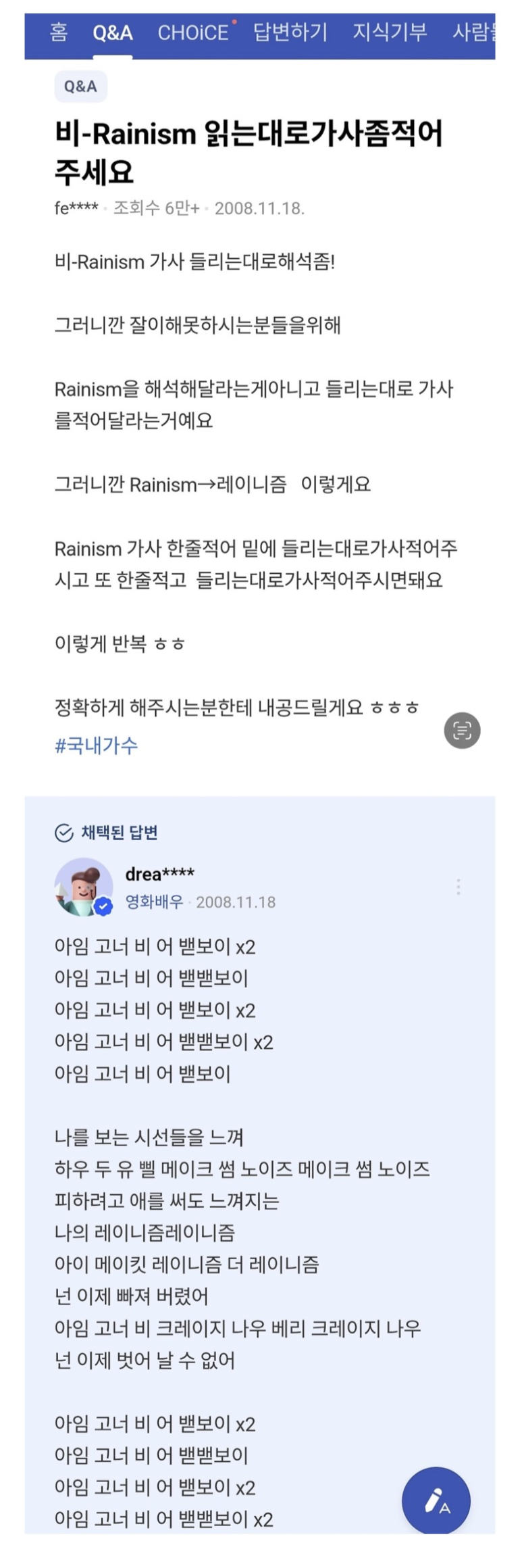 명품 배우 조우진의 반전 매력이 폭발했습니다! 한 네티즌이 가수 비(Rain)의 히트곡 '레이니즘' 가사를 "들리는 대로 한글로 적어달라"고 요청했는데... 조우진은 이에 진지하게 영어 발음을 한글로 옮겨 적는 친절함과 엉뚱함을 보여줬습니다.