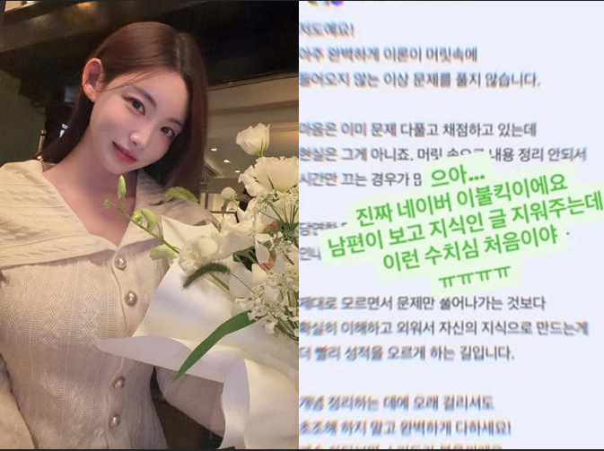 후속 조치: 남편인 축구선수 송민규가 직접 지식인 글을 지워줌