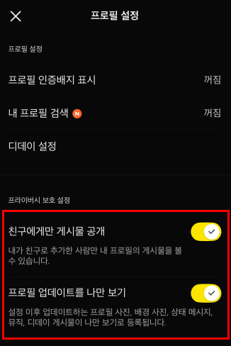 3단계 (2분): 프로필 공개 범위 축소 → ID 검색 허용 끄기