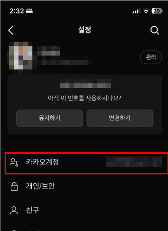 3. '카카오계정' 메뉴 진입